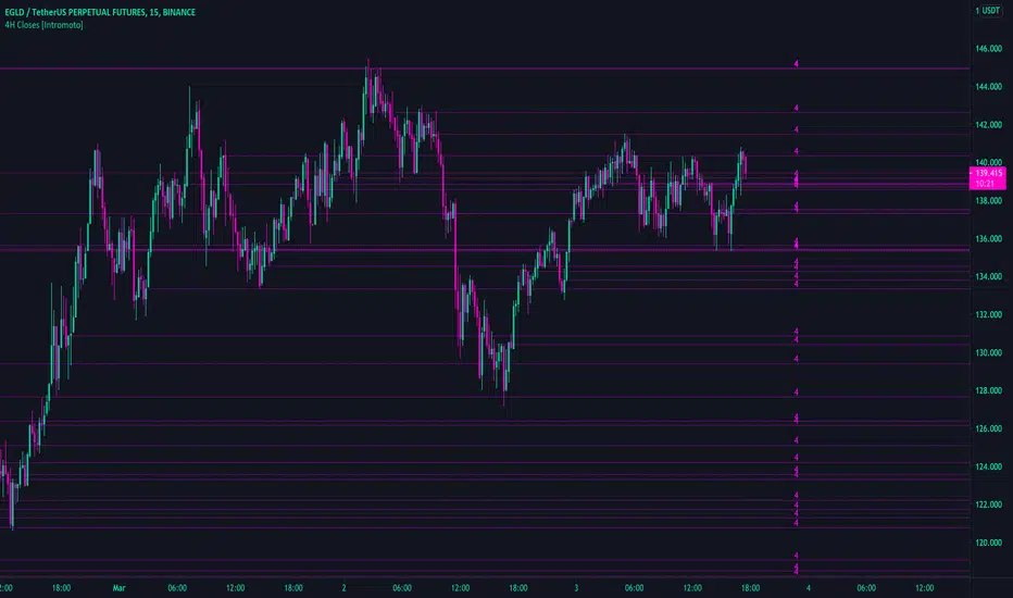 Shows 4 hour closes from the exact candle, regardless of time frame.