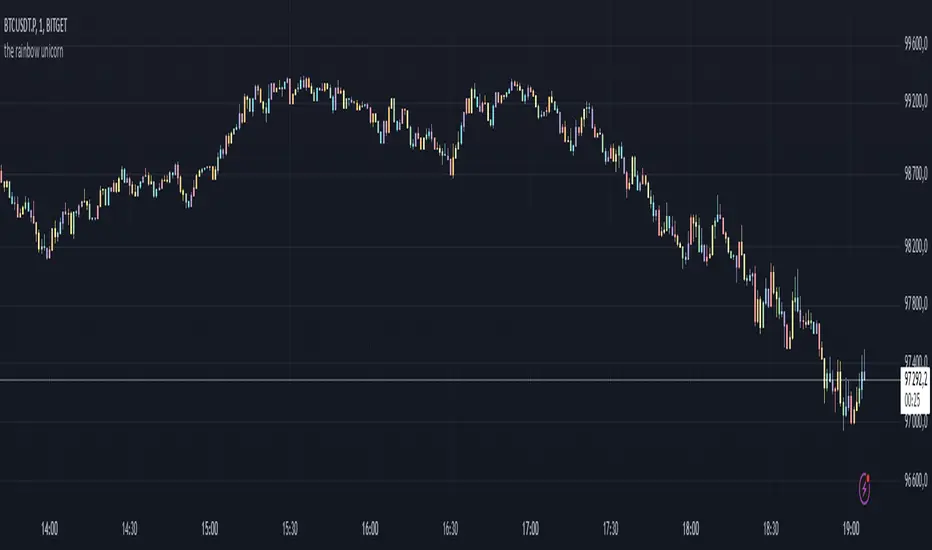 The Rainbow Unicorn is a unique visual indicator designed to add a touch of color and fun to your trading charts. This indicator colors the bars, wicks, and borders using rainbow colors, making technical analysis more enjoyable and visually appealing.