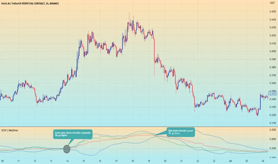 The indicator calculates two volume-weighted moving averages (VWMA) using different lengths, and filters them based on a moving average of volume. The filtered VWMA values are then plotted on the chart as lines, representing the fast and slow moving averages. In addition, upper and lower bands are calculated based on the slow VWMA and plotted as lines on the chart.