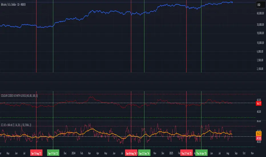 Updated colour coded Ultimate Oscillator with Moving Averages