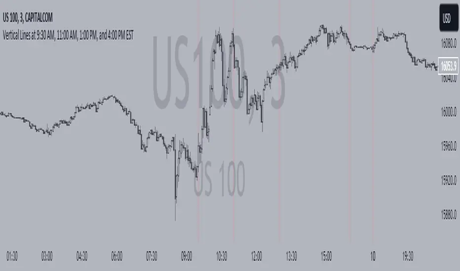 This indicator draws vertical lines at 9.30 am, 11.00 am, 1 pm and 4 pm EST.