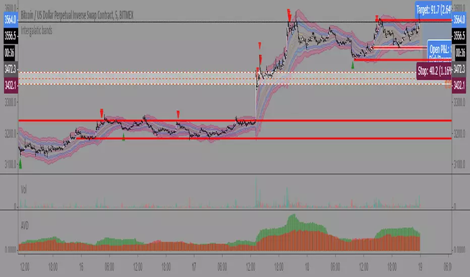 The Bands can be used as dynamic support and resistance levels. Anything from scalping on the 1m chart to swing trading on the daily. The opportunities are endless.