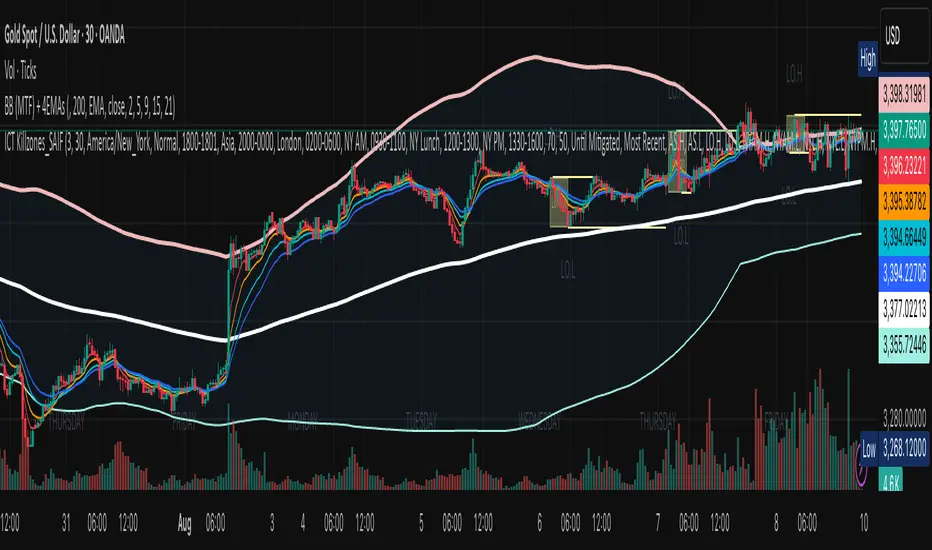 Kill Zones Shading with High and Low levels highlight for required market sessions