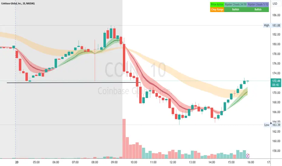Ripster Trend Labels: This script provides labels indicating the trend and chop conditions in the market. It helps traders identify potential trading opportunities based on short-term trends. Its support my EMA Cloud System by providing labels on when Clouds turn bullish or bearish and also uses my concepts of Chop vs Trend based on premarket levels.