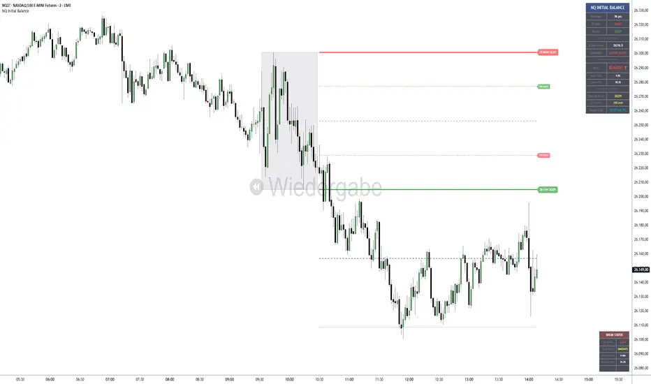 Tracks the Initial Balance (first hour of RTH, 9:30-10:30 AM ET) and provides real-time levels, quadrant analysis, and probability-based trade setups for NQ (Nasdaq) futures.