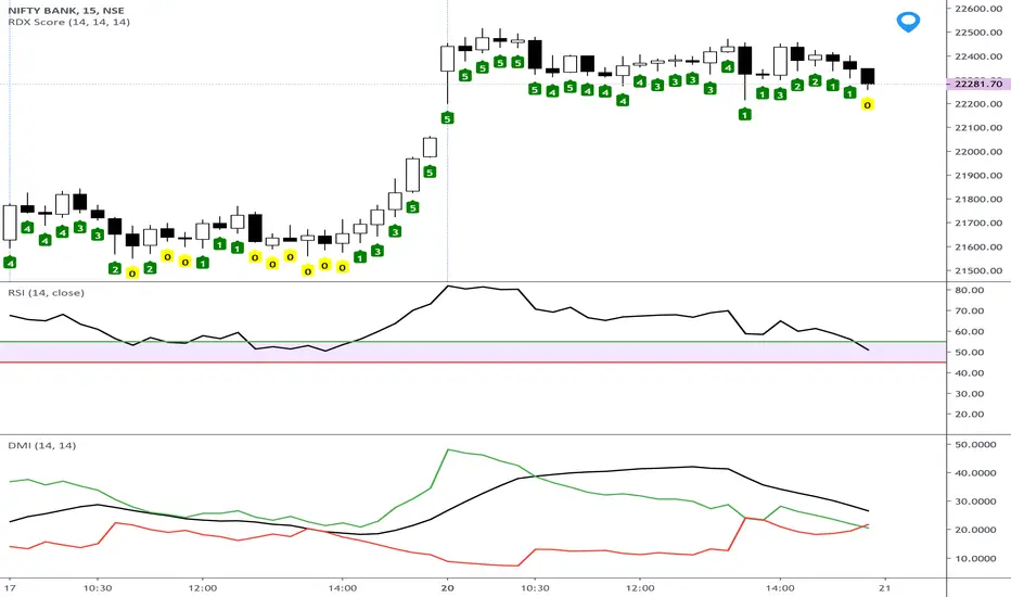 p.s .For the uninitiated, these number generated by this script are used for the RDX strategy devised by @bankniftydoctor. There's an anchored note at the upper right corner, which briefly summarises the RDX score & the positions to be taken accordingly.