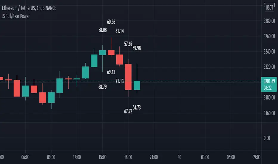 This Indicator measures the wick parts of candles and sum it up. Wick part of candle is a sign of strength that's why it measures the 60 bars of candles wick. then sum it up and converted it in percentage. The output is indicated in the last 10 candles. that's how simple this indicator is but very useful to analyze the strength of every candles.