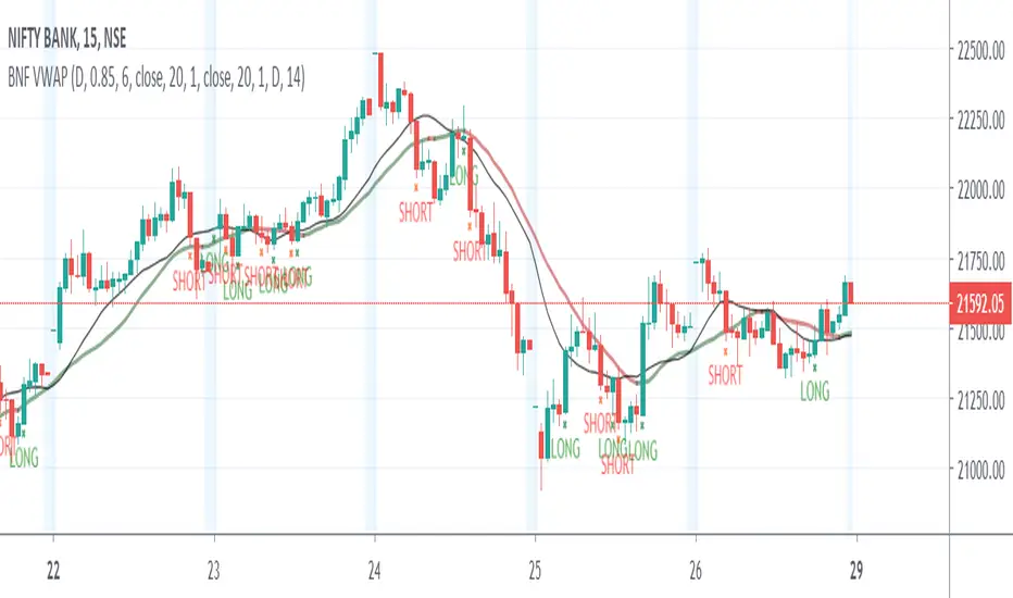 The script picks up Bank nifty stocks with their current respective weights and plots a Volume Weighted Average Price ( VWAP ) line along with 2 EMAs of your choice and an alert when the EMAs cross over and also when price crosses VWAP .
