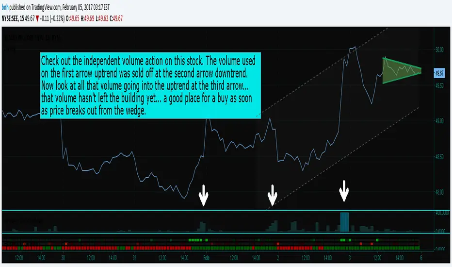 My latest update to my CoCoVolume Indicator. It calculates today's volume percent over the 60 period average for both your symbol and index, and displays that difference. If the percent is over the max it highlights the color, showing BIG action for that stock.