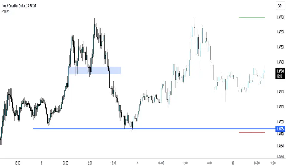 Observing PDH/PDL: The script will display a single horizontal line representing both the Previous Day High (PDH) and Previous Day Low (PDL) from yesterday on the chart.