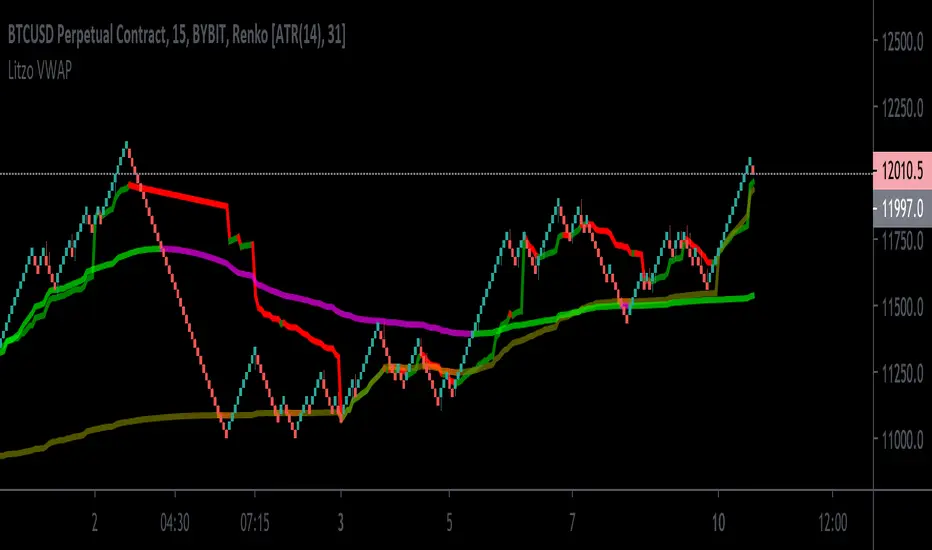 Session VWAP: Price above : Line=Green. Price Below: Line=Red