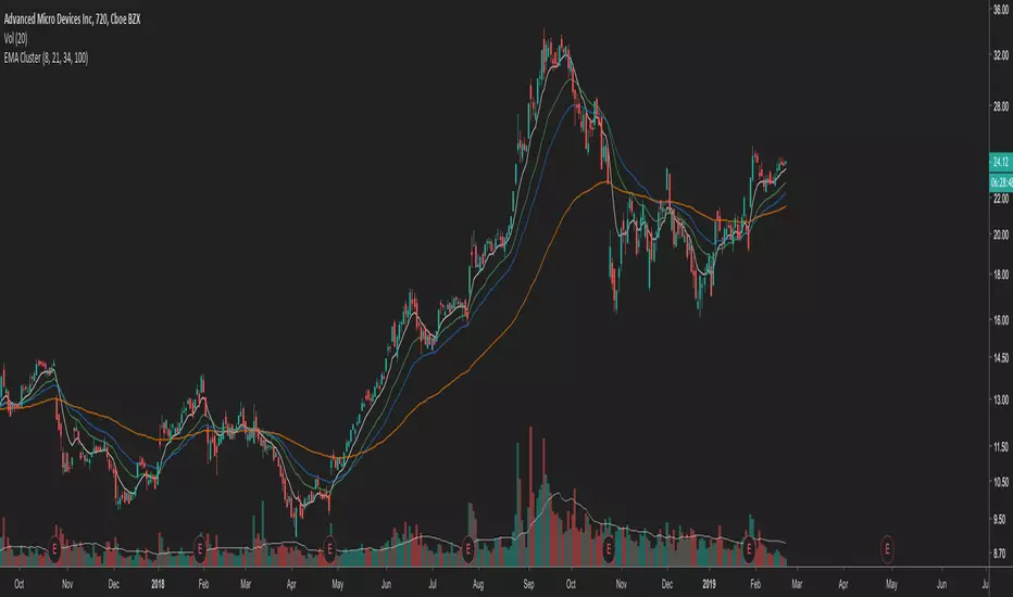 Fairly simple script here. If you use multiple EMAs in charting, this script will allow you to combine up to 4 EMAs in a single indicator. You are free to customize the EMA length, color, and line type. All the settings are contained in the same dialog box you'd use to tweak the settings on any indicator. Skrip dilindungi