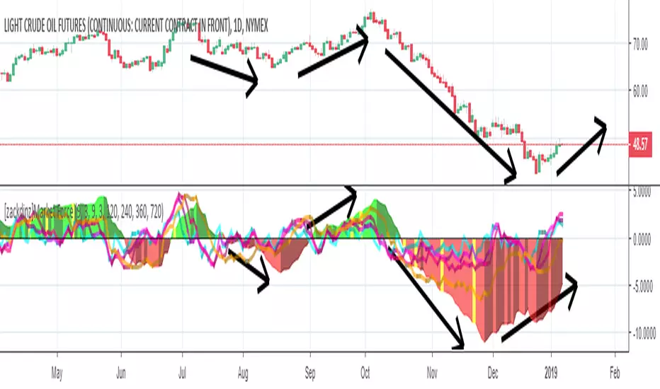 The body of Market Force indicator shows how strong the uptrend/downtrend. Thus, it is easy to know the market direction.