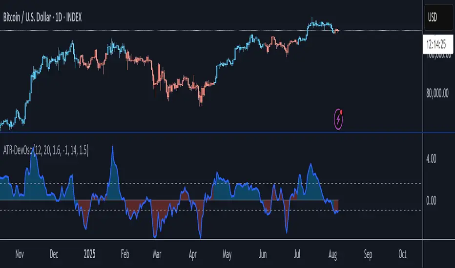 • ATR Reaction Multiplier to tune how strongly sudden volatility spikes contract the deviation, boosting oscillator amplitude during extreme moves