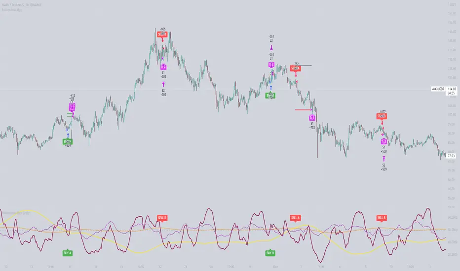 In this strategy we use a combination of two setups to catch the highs and lows and follow the right direction at all times. We also take data from the price action from a second source, which can be chosen in the dropdown menu or via plain text (Cryptocap:BTC, Cryptocap:BTC.D etc).
