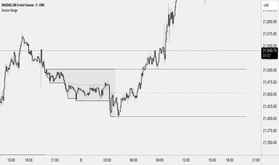 This Indicator Shows you the high, low and the midpoint for a chosen session and displays them on the chart.