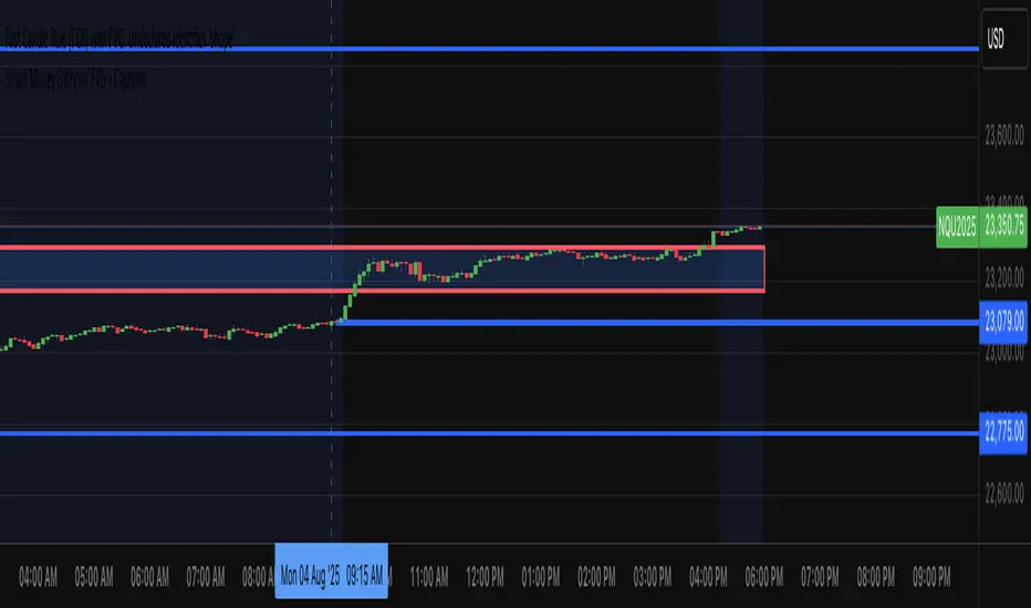 This script detects Fair Value Gaps (FVGs) on the 1-minute chart and highlights potential smart money long and short entries. It automatically calculates a risk-reward target based on a customizable ratio and displays clear caption labels showing the entry, stop, and target levels. Designed for ICT-style scalping setups.