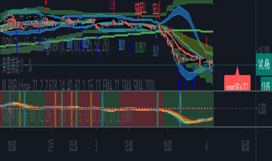 For the purpose of creating this script is to support scalpers or traders who are planning to trade within one day, so Multi RSI and Multi BB show current leg, 15 min leg, 60 min leg, and 240 min leg values. Due to the limitation of pine script, both script should be applied only current leg or longer. Therefore, for example, when you open 60 min leg chart, only current min, 60 min, 240 min leg value will be shown and this logic cannot be changed never until pine will be upgraded.