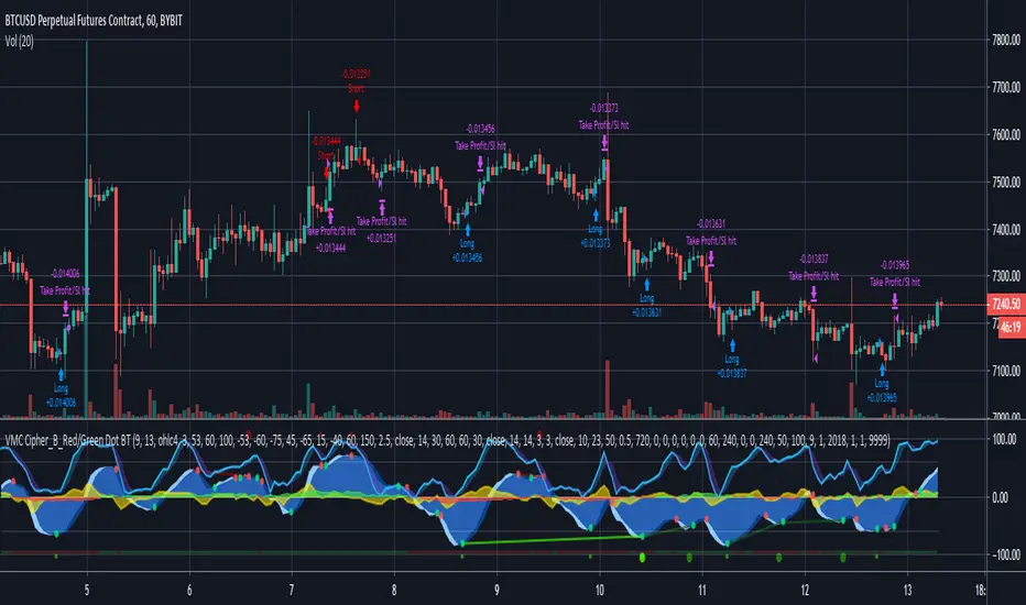 This has been coded to backtest Red/Green dot entries only, so please keep that in mind when using.
