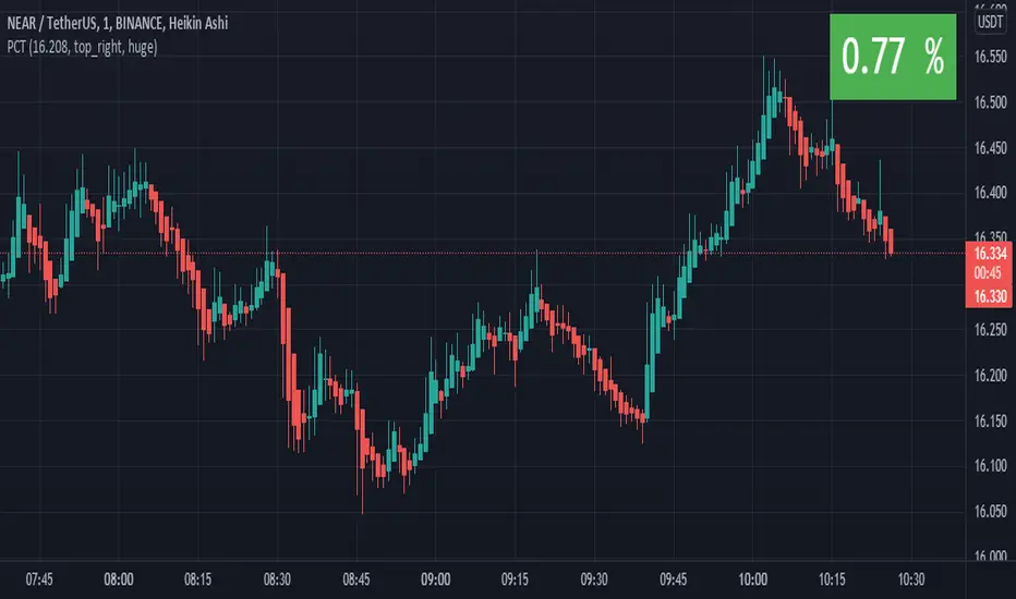 This indicator will allow you to see the percentage change between any entry price and current price of an asset. You will need to input the price of your entry from within the indicator menu. The indicator will then calculate and display the percentage difference(change) between the buy/sell price that you input and current price. The displayed percentage value will continue to update in REAL TIME.