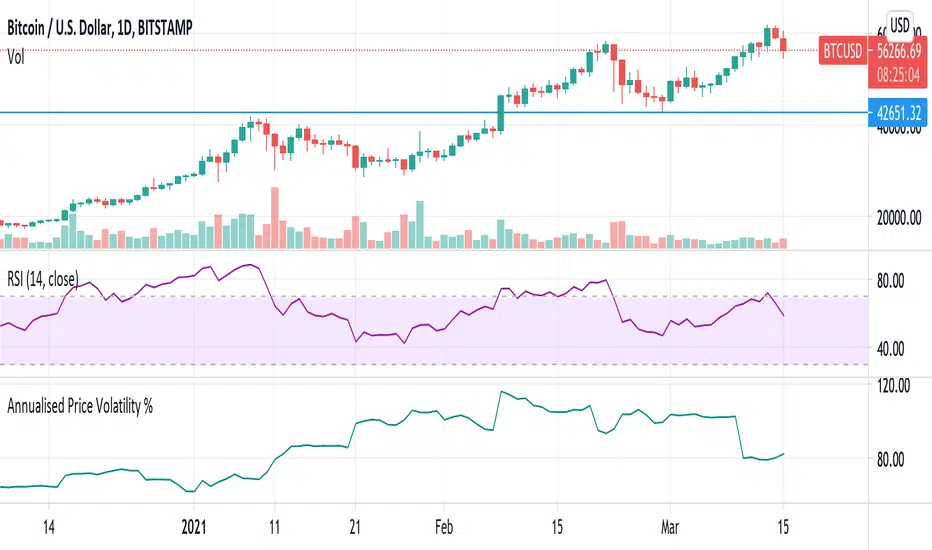 This is the correct annualisation for crypto currencies (continually traded). It is the rolling 1m vol using 30 days (instead of 25) and an annualisation factor of sqrt(365) not sqrt(252).