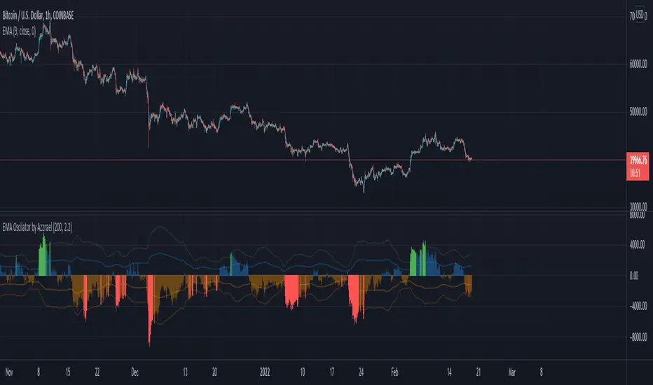 Just one more simple and useless Oscilator based on EMA. I've used Standard Deviation of (close - ema) to show overheated zones.