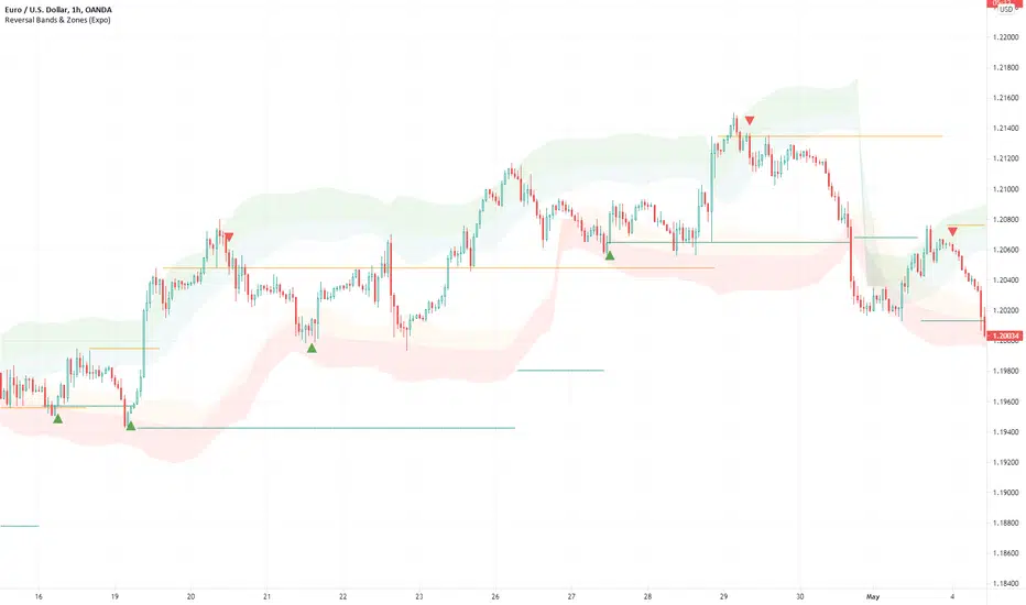 Reversal Bands & Zones (Expo) is an algorithm that analyzes the market in real-time and identifies reversal points, key market zones, and trends. The advanced and unique reversal bands act as support & resistance zones, and together with the trend tracking feature, it serves as a trend confirmation. The real-time market zones are displayed where there is a high probability of finding support/resistance. The algorithm does also map out key pivot levels based on the current market structure.