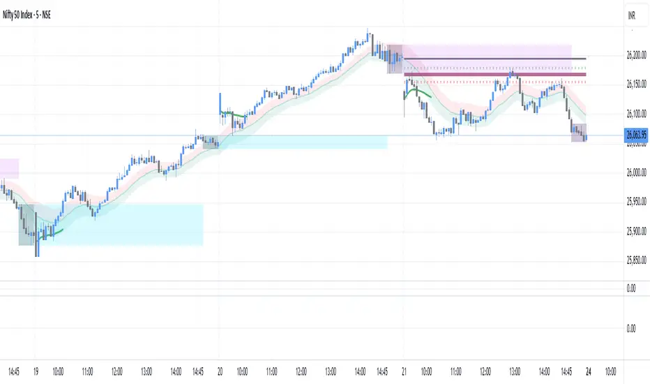 It plots the previous day’s last 30-minute high/low box (IST: 15:00–15:30), the first-hour anchored VWAP (IST: 09:15–10:15), daily pivot levels, and ATR-based dynamic support/resistance.