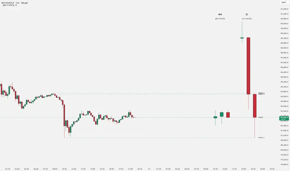 - Shows remaining time until HTF candle closes
