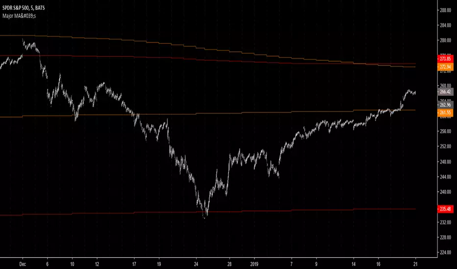 This script incluse the 100 Daily SMA, 200 Daily SMA, 100 Weekly SMA, and the 200 Weekly SMA. They stay the same no matter the timeframe used.