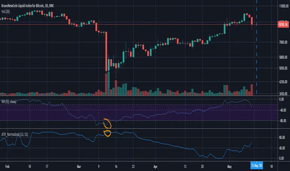 This script is good to use with Williams %R indicator, to find out when price has bottomed out.