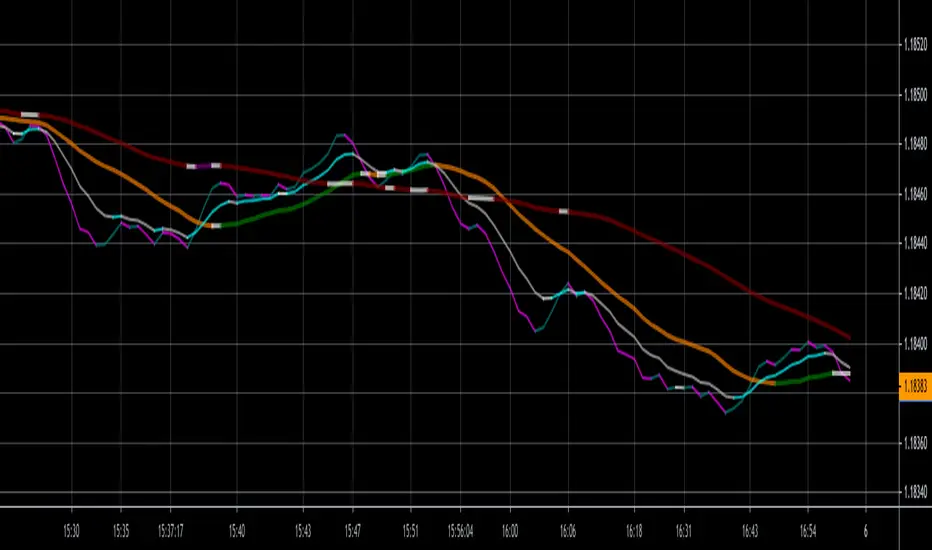 1. Updated this available script to have 2 SMA's and 2 EMA's.2. Revised so that plot turns white when flat.