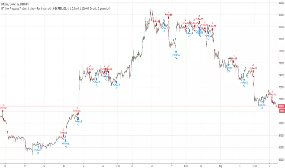 This is a LFT Strategy made for brokers with high fees per trade. It minimizes the amount of signals given by using an algorithm which only enters when the market has satisfied 15 different indications, and a few custom requirements such as VOD. (Volatility on Daily)