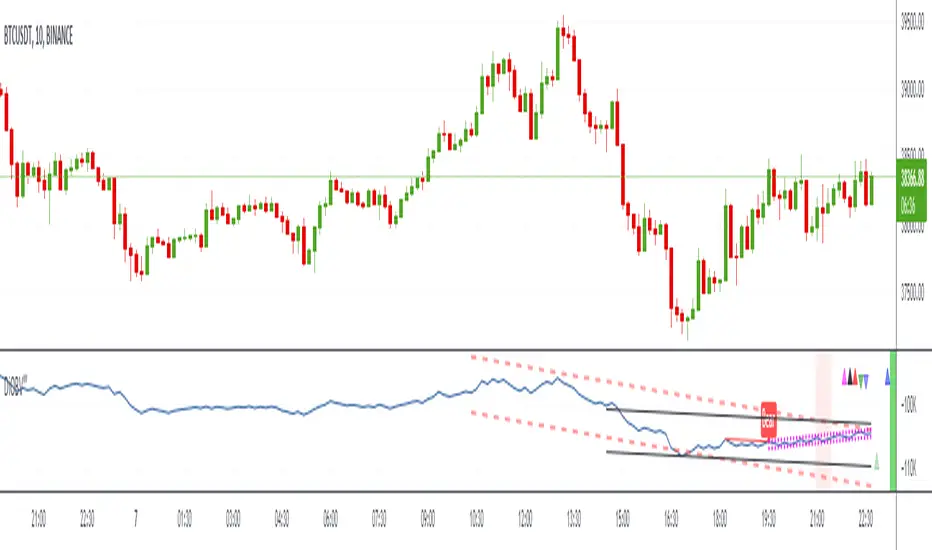 Does the same as the ordigary OBV, but it has embeeded the 4TC indicator that provides trending channels that helps understand the strength of direction changing and divergencies with the price.