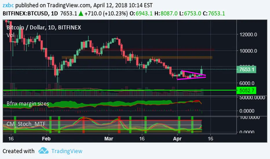 This displays the long and short margin sizes of BTCUSD on Bitfinex. When longs are higher volume, difference is filled with green color; when shorts are higher, the fill is red. Also at the bottom the total volume change vs the SMA20 is displayed. Green bars means net change is favoring longs, red the opposite. Let me know if you would like to see other additions/changes.