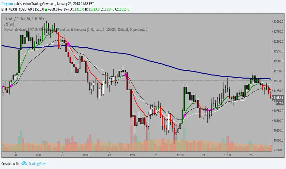 Dieyson daytrade EMA 9+20+200+VWAP and bar & line color