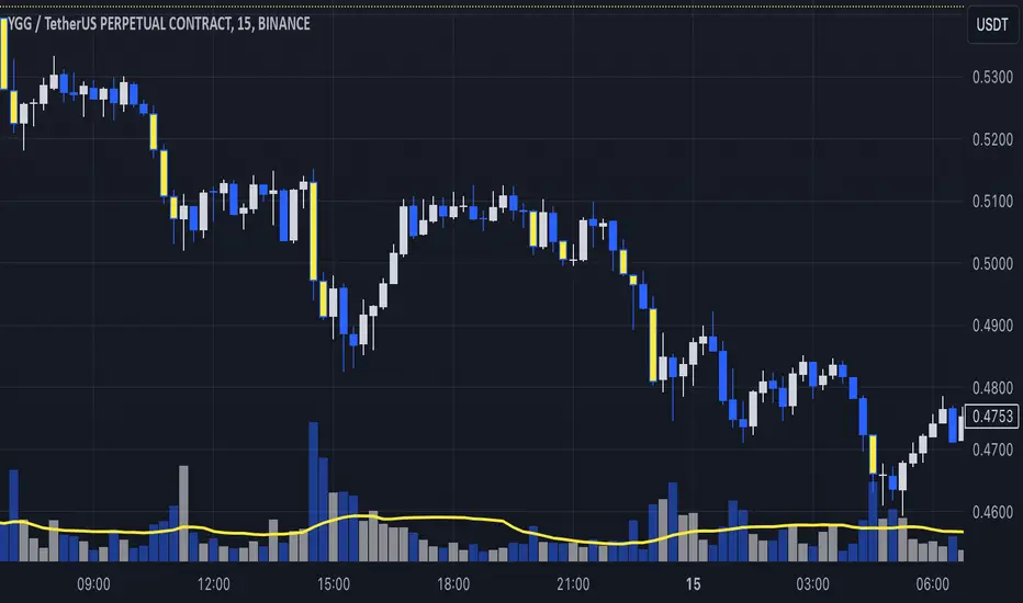 The "BoS Yellow Candle" indicator identifies and highlights the first candle that breaks a Break of Structure (BoS) in a given look-back period. A BoS occurs when the price either breaks above the highest high or below the lowest low within a user-defined look-back range (default set between 7 and 12 candles).