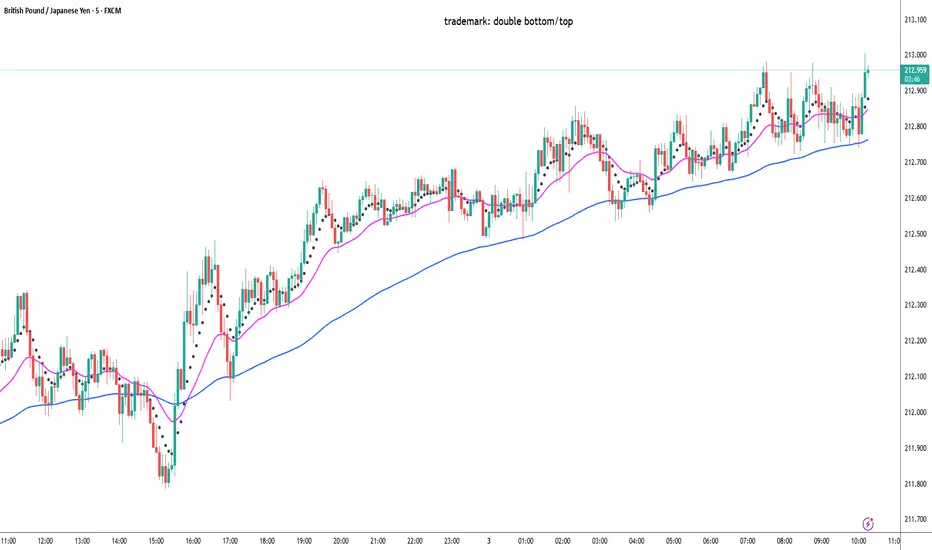 The indicator dynamically adjusts its moving-average lengths based on the active chart timeframe, making it suitable for lower-timeframe trading and scalping workflows.