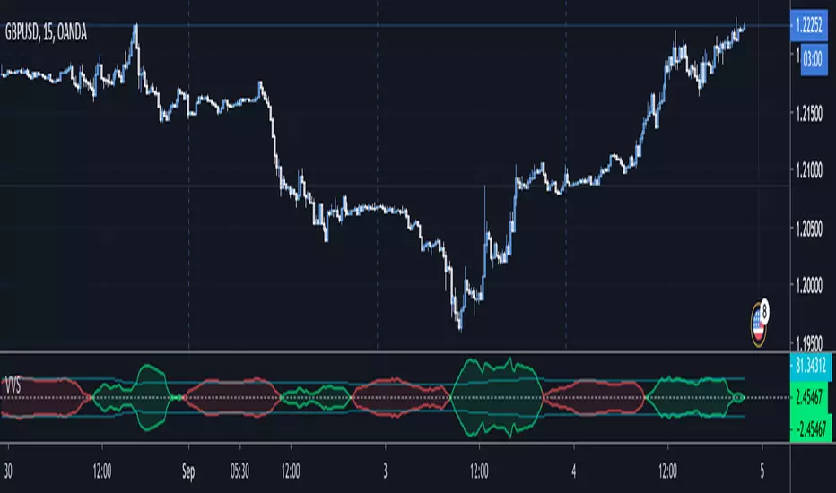This indicator estimates price volatility and it is based on Volume only (presumably Tick Volume in Forex).