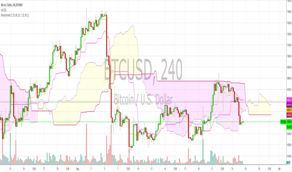 An Ichimoku cloud indicator that uses the Binance moving averages (7, 25, 99) instead of the Ichimoku defaults of 9, 26, 52. Great for trading alts on the 4h but will work on any timeframe.