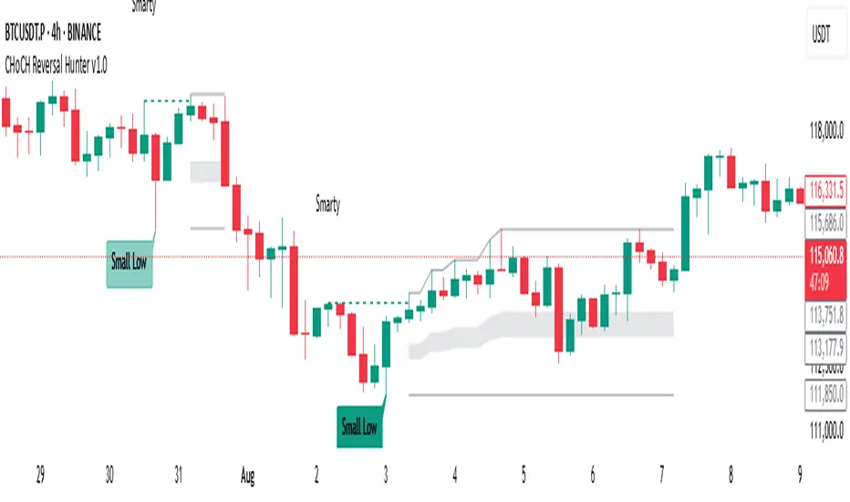- CHoCH type classification (Inside, Smarty, Pivot).