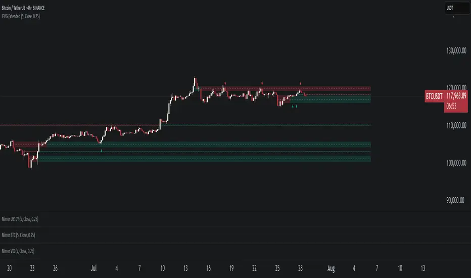 1) Indicator setup and resource limits:Renamed indicator to “IFVG/FVG Extended” with short title “IFVG/FVG Ext”.
