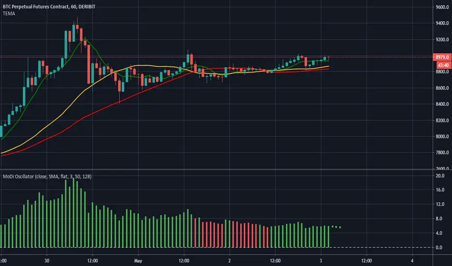 Let's say you are short a color flip indicates caution or profit-taking, telling you the price is above the set fastMA but still below the set slowMA.