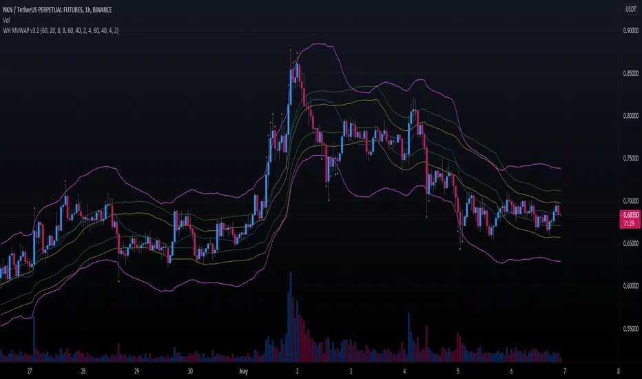 Added input for timeframe (supports minutes and hours only). The VWAP lines will not move when changing resolution of the chart, example - when changing from 5 minute candles to 2 hour candles.The lines will only be accurate when viewing the chart in the same time frame as set in WH, but otherwise it's quite a good approximation with a high period setting in WH (10 or higher). If your period is low (say you're running 3min/3), it is not recommended that you view the chart at other resolutions.