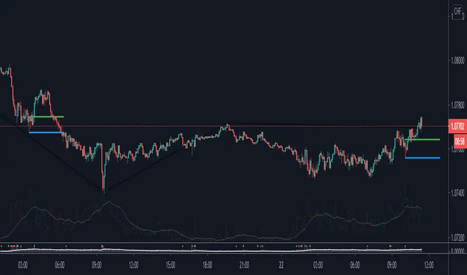 This is a collab script with kisshore19 to identify the highest volume candle on the chart each day and mark the highs and lows of that candle.