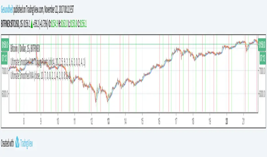 Also displayed in chart image is the companion script, "Ultimate Smoothed MA Turning Points" to give more definitive visuals when tuning. That script can also be readily adapted for alertcondition.