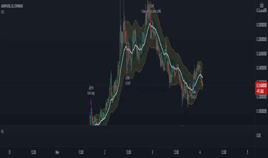 The second key piece of how this script works is the Fibonnaci levels. For the purposes of using this script, the first two levels (Fib 1 and Fib 2) are only for display purposes of the bands and does not affect the triggers for trading. It is only the third and fourth levels which impact the trade triggerers for buying and selling. The idea here is that the best times to execute a trade is when the price moves into the outer bands as these are typical triggers for selloffs from those suffering from FOMO.