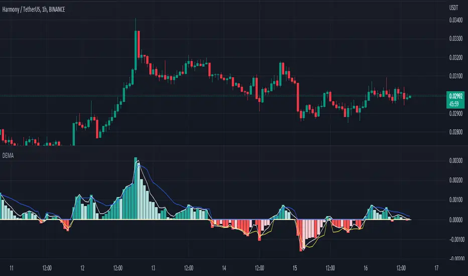 * A yellow line is included as a standard deviation of the difference between the value of the moving average and the assigned entry (price) for values below the histogram below 0, just as the blue line at the top already worked for values above to 0.