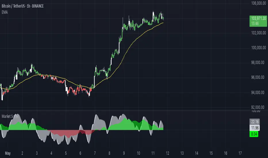 - EMA Trend Tracking: Tracks the 50-period EMA to determine overall market momentum and colorizes bars accordingly.