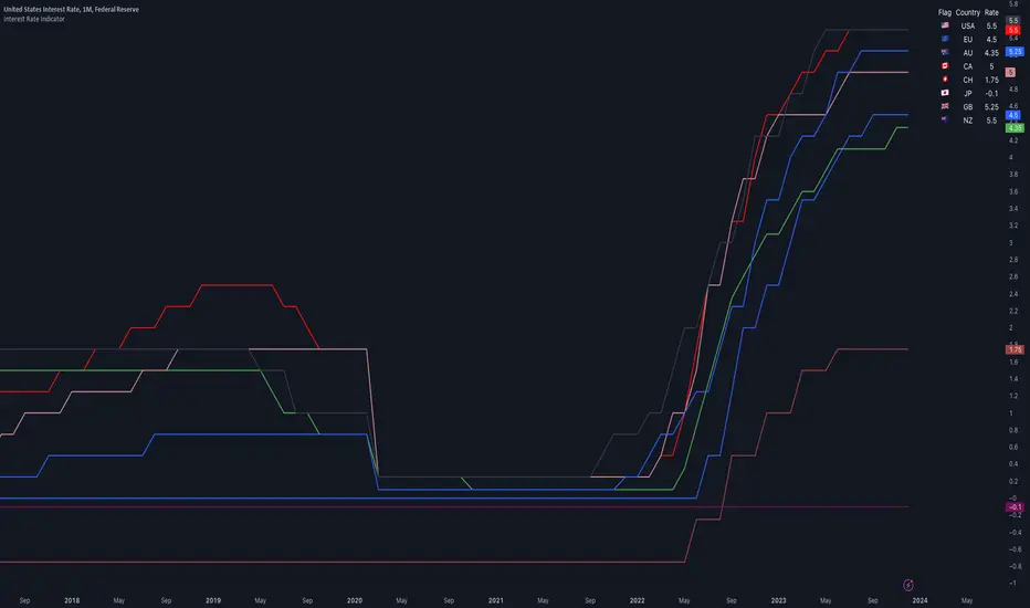 This indicator is designed for traders and analysts looking for a quick and efficient way to monitor and compare the interest rates of major economies directly within TradingView, facilitating better informed financial and investment decisions.